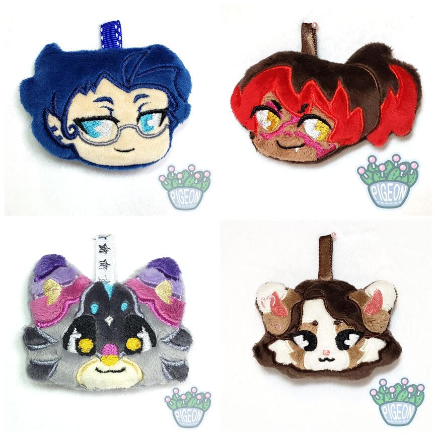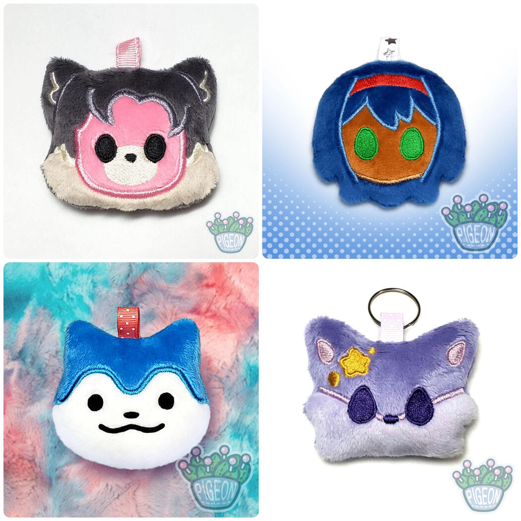 an approximately 4x4 inch plush charm of a character's head! i can work with just about any design! there is no detail on the back of the charm.